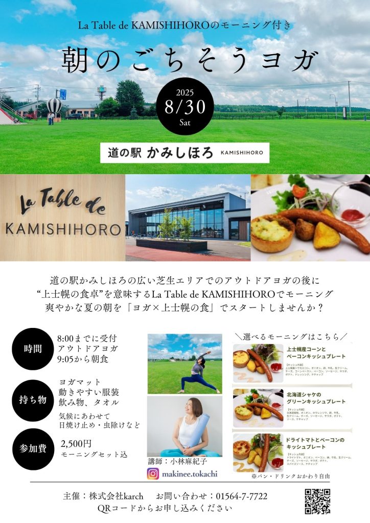 【募集開始】 8/30(土) 道の駅かみしほろ 朝のごちそうヨガ La Table de KAMISHIHOROのモーニング付き!(8/27受付終了)